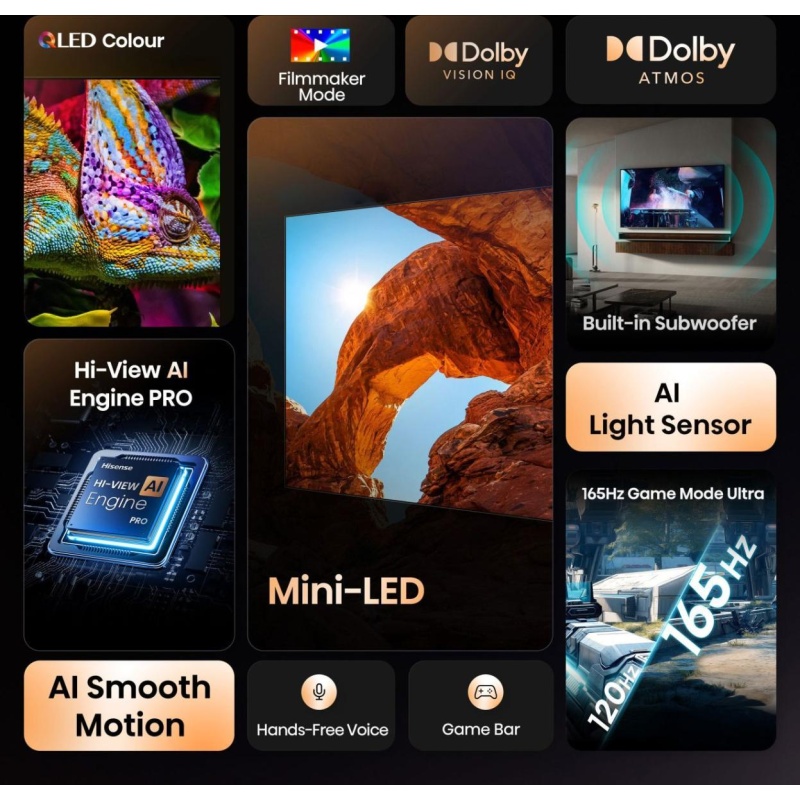 Mini-LED technology elevates your viewing experience, bringing vibrant brightness to life while revealing deep, rich shadows with striking clarity.