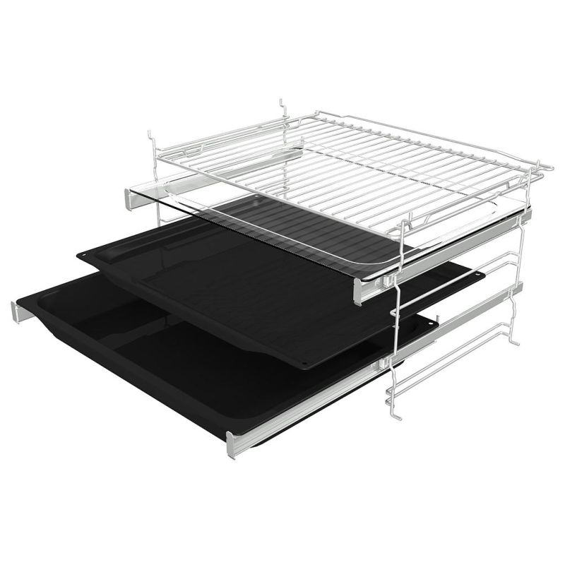 Smoothly sliding telescopic rails provide perfect visibility during baking and make handling baking trays easier and safer. Depending on the model, Gorenje OptiBake ovens feature ¾ telescopic rails on one or two levels.