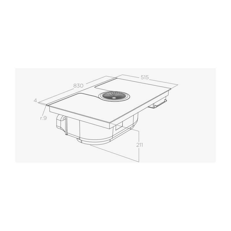 Top-level performance is further ensured by two cooking zones that can be combined for use with very large pots, while the extraction system keeps the air clean by eliminating fumes and smoke.