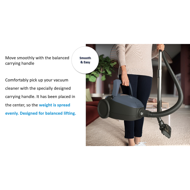The all-new OneGo floor nozzle provides excellent pickup of all particles, large and small, regardless of floor type. Designed to clean all surfaces smoothly in one effortless motion.