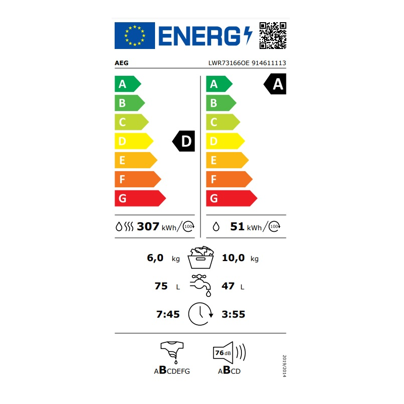 PreciseLoad automatically adjusts cycle duration, as well as energy and water consumption, in proportion to the load size. This delivers customised wash cycles that save energy and water when washing and drying smaller loads.