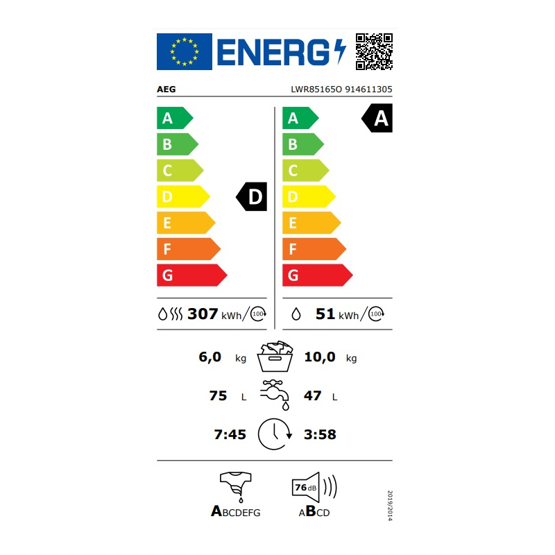 | Energy Label (wash + dry) | D |