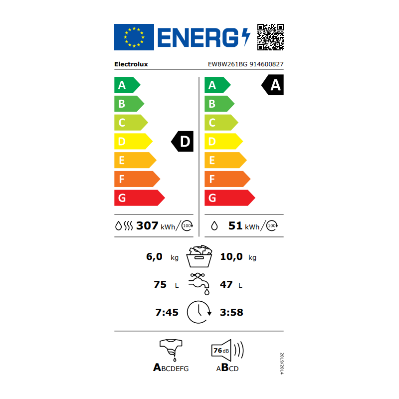 | Energy Label (wash + dry) | D |