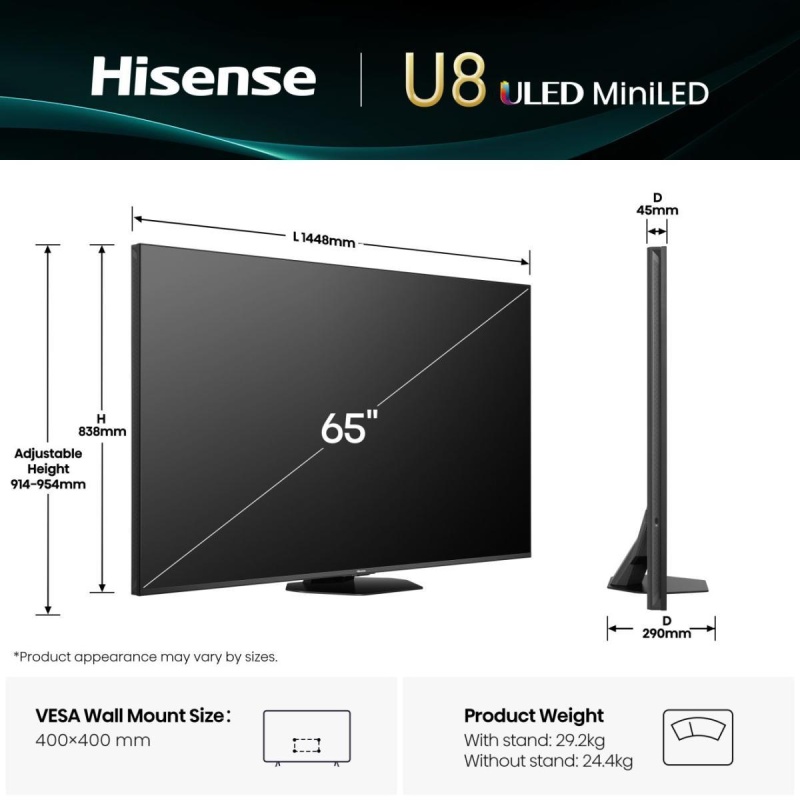 65" 4K ULED Mini LED Smart TV teler HISENSE 65U8Q