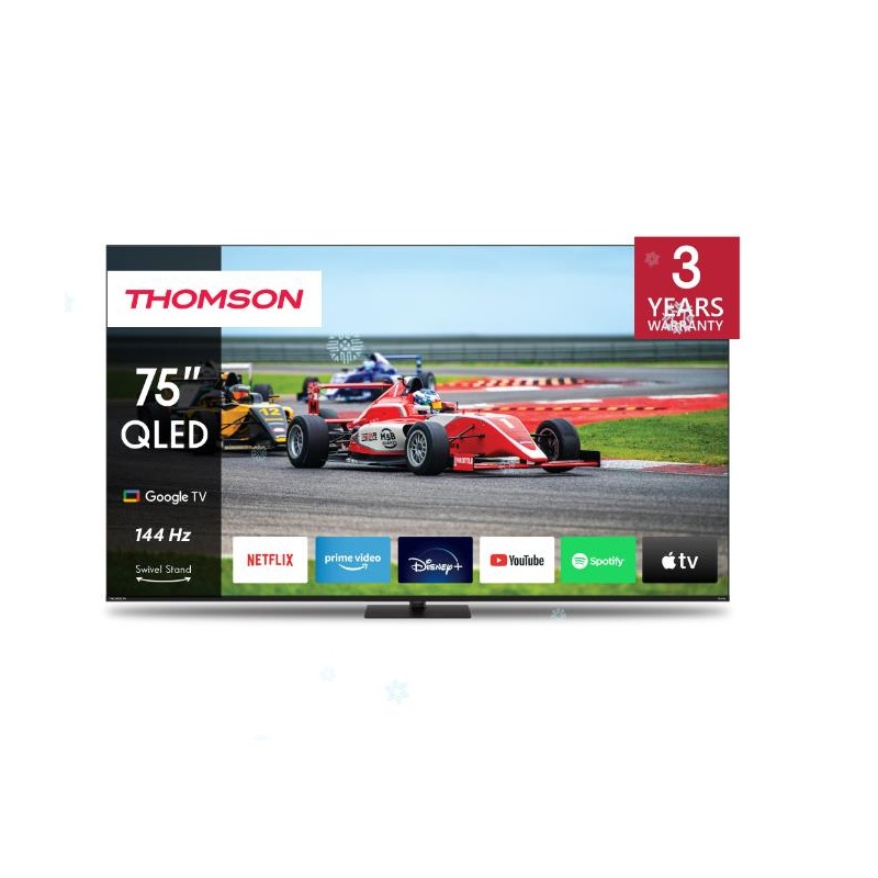 Thomson 75QG7C14 on 75-tolline 4K UHD QLED Pro Google TV, mis pakub sujuvat 144 Hz värskendussagedust, tagades kiire reageerimise ja terava kujutise, mis sobivad ideaalselt kiirete action-filmide, spordiülekannete ja mängude nautimiseks.