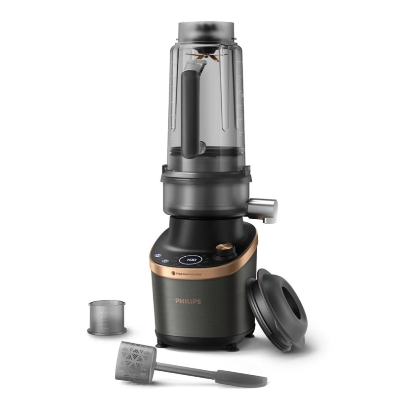 Philipsi esimene mahlapressimooduliga kiire kannmikser. Tänu revolutsioonilisele kannudisainile ja integreeritud filtrile saate joogi tekstuuri kohandada just selliseks, nagu eelistate. Kõige täiuslikum kannmikser pakub kõige laiemat valikut siidistest smuutidest kuni selgete või viljalihaga mahladeni. See lahendus ühendab segamise ja mahla pressimise ühte seadmesse ja hoiab niimoodi köögis ruumi kokku.