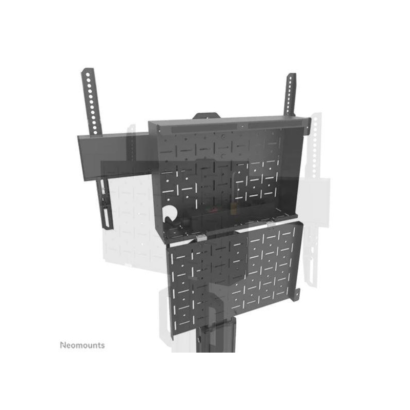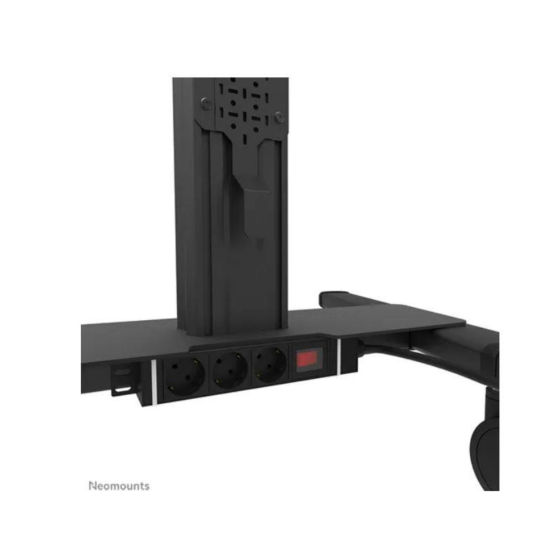 Neomounts FL50S-825BL1 MOVE Up on ratastel põrandastend lameekraanidele kuni 75", maksimaalse kandevõimega 70 kg. Põrandastendi kõrgust saab käsitsi reguleerida (104–157 cm), samuti kinnituskronsteini kõrgust. Komplektis on lukustatav ja ventileeritav riistvarasahtel kaabliavaga, mille paigaldamine on valikuline.