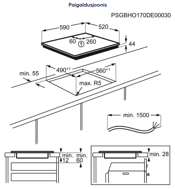 | Paigaldusviis | paigaldus tööpinda |