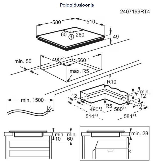| Paigaldusviis | paigaldus tööpinda või tasapinnaliselt |