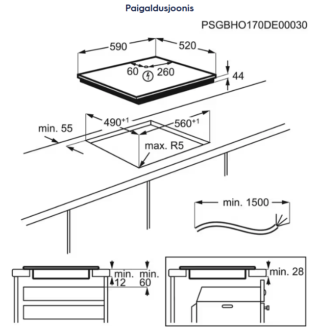 | Paigaldusviis | paigaldus tööpinda |