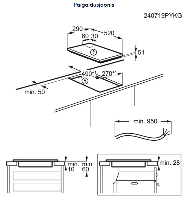 | Paigaldusviis | paigaldus tööpinda |