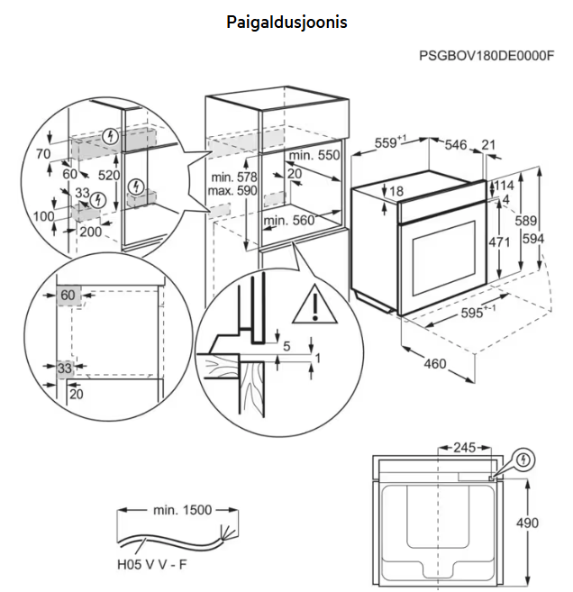 5000-seeria AEG SurroundCook ja SteamBake funktsioonidega integreeritav ahi OA5PB531AB