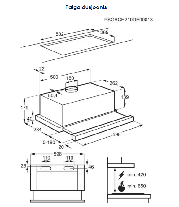 | Minimaalne õhuvool (m3/h, IEC 61591) | 170 |