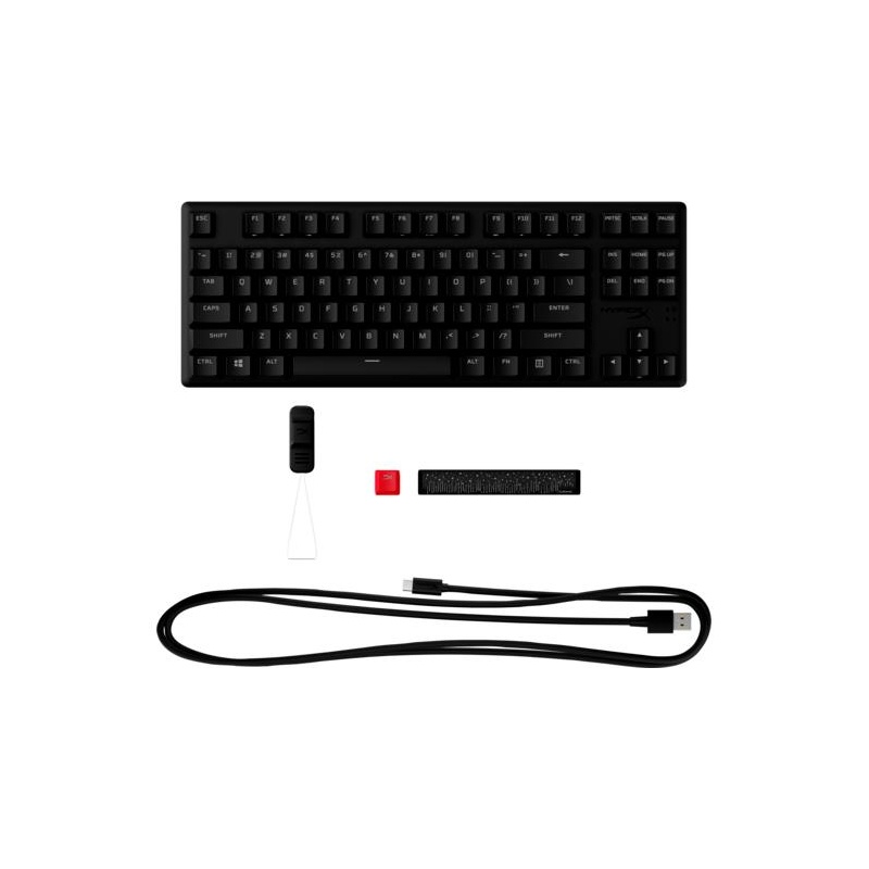 Mänguriklaviatuur | USB | ENG | Windows 11 | Windows 10 | Windows 8 | Windows 7 | Komplektis eemaldatav USB juhe, HyperX klahvikatte eemaldaja, 1x HyperX-disainiga ESC klahvikate, 1x HyperX-disainiga space-klahv, kiirjuhend | Värv must