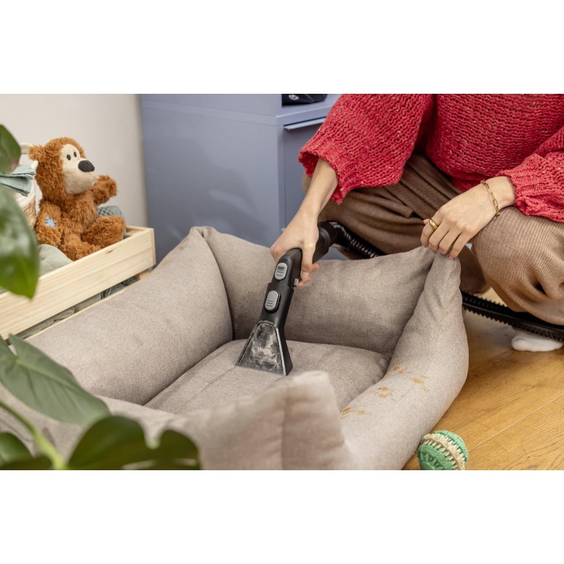 Sügavpuhastav mõju koos ergonoomilise disaini ja multifunktsionaalsusega: suure imemisvõimsusega SE 4 Plus tekstiilipesur-tolmuimeja tagab tekstiilide puhtuse kuni kiududeni välja.