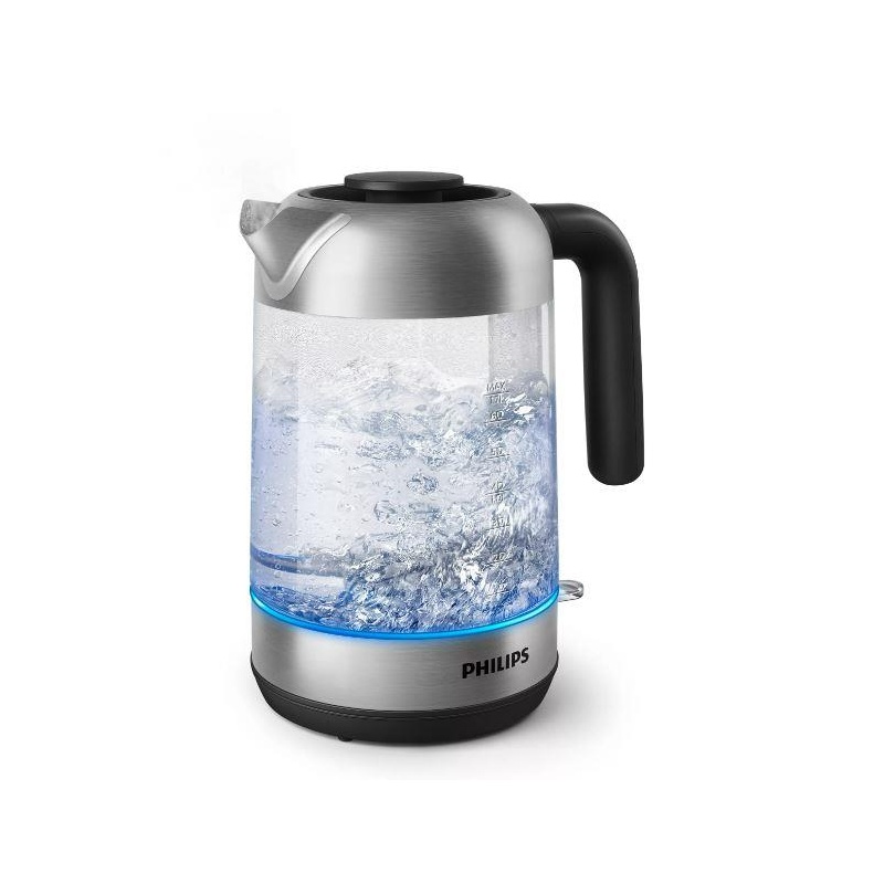Philipsi 1,7-liitrine peresuuruses klaasist veekeetja on kaasaegse disainiga ja varustatud intuitiivse sinise valgusindikaatoriga seadme põhjas, mis annab märku, kui veekeetja töötab.